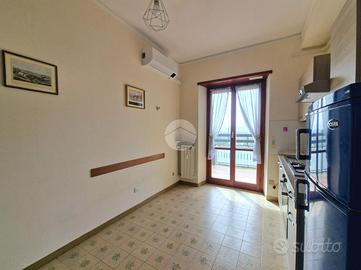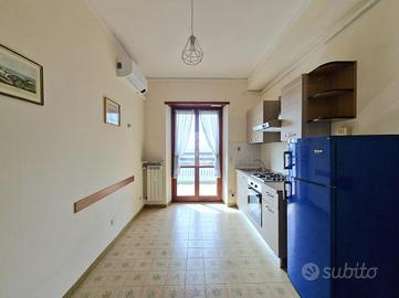 Sulla nostra sinistra troviamo un bilocale costituito da una grande camera matrimoniale, bagno con doccia, e cucina abitabile con uscita sul secondo terrazzo abitabile.