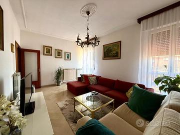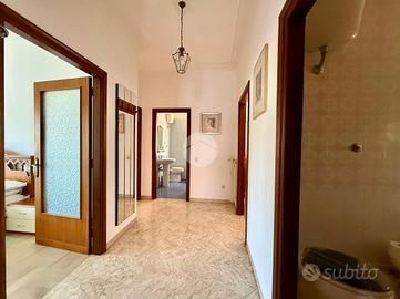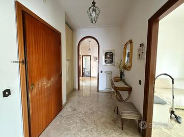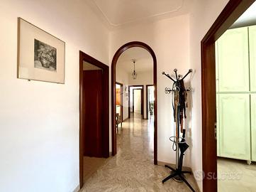 Entrando ci accoglie un elegante ingresso che dispone di un pratico armadio a muro, a destra ci accoglie il salone e separata da un fondello la cucina con tinello, proseguendo troviamo lo studio/quarta camera.