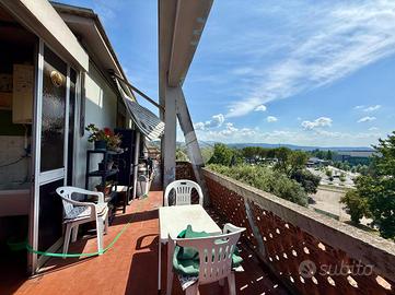 Viale dello stadio, in una zona in forte via di sviluppo, proponiamo in vendita un attico abitabile fin da subito con uno splendido terrazzo perimetrale ed abitabile. Salendo le scale troviamo l'unico appartamento del piano di circa 140mq. Entrando ci accoglie un elegante ingresso che dispone di un pratico armadio a muro, a destra ci accoglie il salone e separata da un fondello la cucina con tinello, proseguendo troviamo lo studio/quarta camera. La zona notte dispone di tre camere e due bagni. Tutti gli ambienti godono di accesso diretto al terrazzo. Completa la proprietà un posto auto accessibile tramite cancello elettrico e un garage al piano terra.