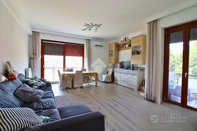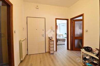 Appena varcata la soglia, l'ingresso ci accoglie con discrezione e ci guida verso un'ampia sala luminosa, cuore della casa, con accesso diretto al terrazzo: uno spazio aperto dove immaginare colazioni lente, piante fiorite o serate d'estate all'aperto.