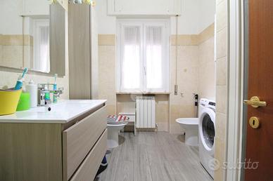 Il secondo bagno, più pratico, è dotato di doccia e spazio lavanderia con lavatrice integrata.