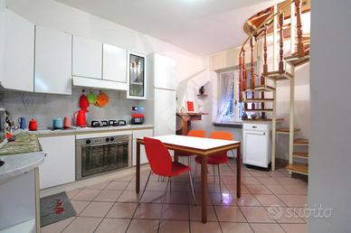 Appartamento spazioso su due livelli in zona centrale. Dispone di doppi soggiorni, due cucine (una trasformabile in terza camera), terrazze, balconi, doppi servizi, due garage e ripostiglio. Ideale per famiglie numerose o chi cerca ambienti flessibili in una palazzina con basse spese