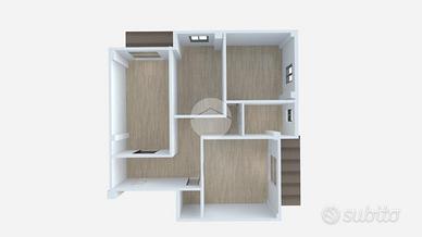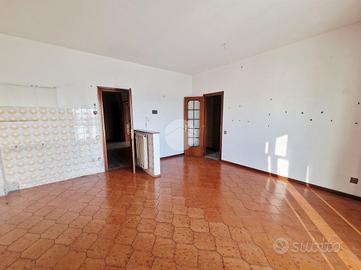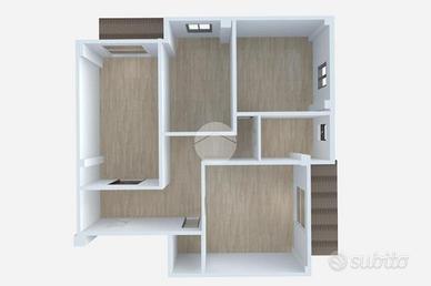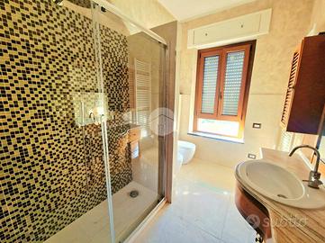 Proseguendo troviamo la cucina vivibile, da cui si può comodamente ricavare la terza camera con uscita sul secondo terrazzo abitabile. A seguire, un disimpegno che conduce al primo bagno con doccia e finestra, ristrutturato circa cinque anni fa, le due camere matrimoniali, ed il secondo bagno.