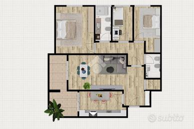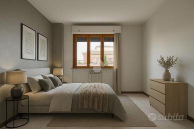 Nella zona notte, composta da tre camere, la stessa neutralità lascia spazio alla fantasia. Una camera matrimoniale spaziosa può prendere vita con toni chiari e luci soffuse, la seconda stanza può diventare un ambiente di lavoro ordinato e accogliente, mentre la terza si presta a essere personalizzata come cameretta o stanza per gli ospiti.