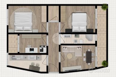 La zona notte presenta tre camere di dimensioni generose che possono diventare stanze per i figli, spazi di lavoro, o rifugi personali dove rilassarsi a fine giornata. Due bagni completano la funzionalità dello spazio, rendendo ogni momento più semplice.