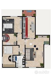 Proseguendo troviamo la zona notte composta dalla camera matrimoniale, due camerette da adibire anche a studio ed il bagno finestrato con la vasca.