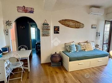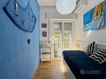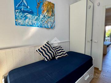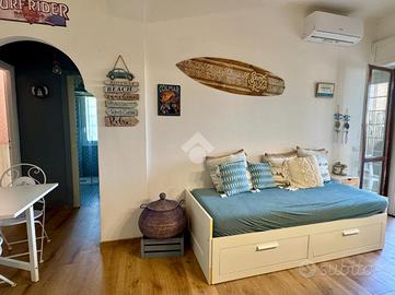 In contesto tranquillo e riservato, all'interno del Residence Borgo Nostro, proponiamo in vendita esclusiva un appartamento al piano terra di circa 75 mq, recentemente ristrutturato e pronto da vivere, a soli 800 metri dal mare. L'immobile si apre su un luminoso soggiorno con cucina a vista e offre una comoda distribuzione degli spazi con una camera matrimoniale, due camerette e un bagno finestrato con doccia. Gli ambienti sono climatizzati caldo/freddo, ideali per garantire comfort in ogni periodo dell'anno. Il vero valore aggiunto è rappresentato dallo splendido giardino privato di circa 400 mq, uno spazio raro e versatile dove vivere momenti di relax in totale privacy, organizzare pranzi e cene all'aperto o godersi il rientro dal mare grazie alla comoda doccia esterna. Completala proprietà un posto auto assegnato all'interno dell'area condominiale. Una soluzione chiavi in mano, ideale come casa vacanze, investimento o per chi desidera vivere a pochi passi dal mare senza rinunciare a tranquillità e servizi, tutti comodamente raggiungibili nelle immediate vicinanze.