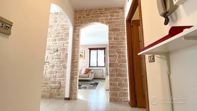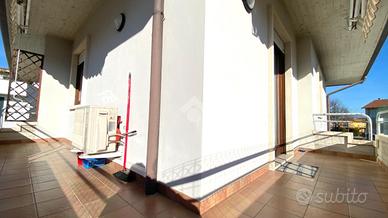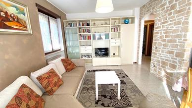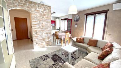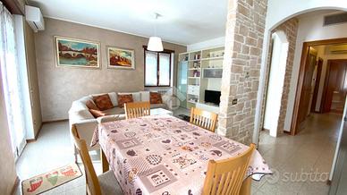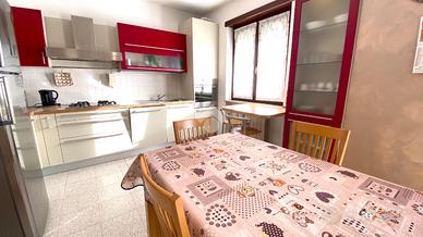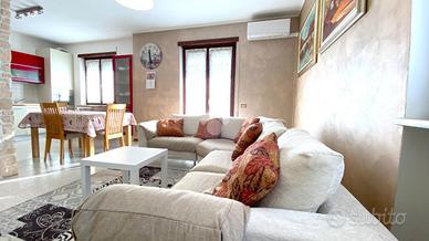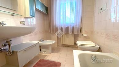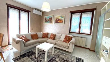 Thiene. In contesto Trifamiliare disponibile ampio TRICAMERE posto al piano primo e ultimo. L'immobile, recentemente ammodernato, dispone di ingresso su zona giorno servita da terrazzo, camera matrimoniale, camera doppia, camera singola e due bagni. Climatizzato e ceduto con l'arredo attualmente presente. Al piano interrato collegata da scala interna troviamo una taverna di 35mq con cucina, caminetto per griglia e pizza, climatizzatore caldo/freddo. Cantina spaziosa, ampia lavanderia con doccia e wc, doppio posto auto coperto ed uso esclusivo di un giardino esterno. Immobile libero e subito disponibile. Classe energetica 'C'.