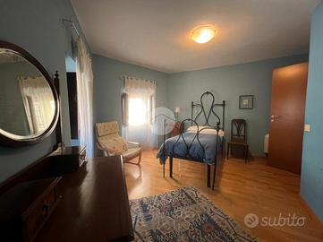Internamente troviamo un'ampia zona living che ci accompagna, tramite una piccola gradinata, in una delle tre camere da letto con bagno. Scendendo ancora ci dirigiamo in un piano interrato dove ad accoglierci abbiamo due camere da letto con un secondo bagno molto grande e confortevole.