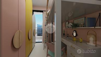 L'immobile, parzialmente ristrutturato nel 2015, è così composto: ingresso su corridoio, cucina, soggiorno, due camere, un bagno con doccia, due balconi ed un terrazzo.