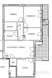 La cucina è abitabile, può ospitare una cucina angolare ed ha anch'essa una porta finestra che ci conduce al terrazzo.