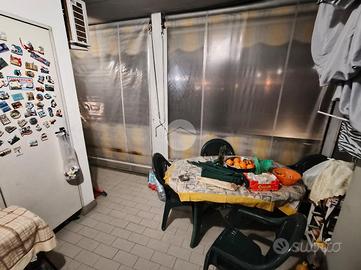 La porta blindata si apre su un'ampia sala che può ospitare i mobili da soggiorno, un comodo divano, il tavolo e le sedie; luminosa, ha una porta finestra che ci conduce al terrazzo di circa 15 mq dotato di tende estate/inverno.