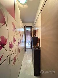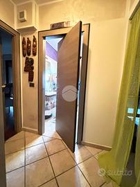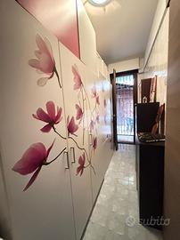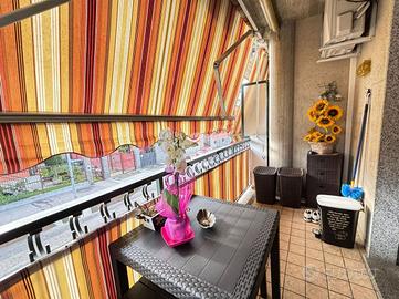 L'appartamento si apre su un accogliente ingresso che conduce all'ampio soggiorno, dotato di accesso diretto al balcone, attrezzato con tende da sole per l'estate e l'inverno.