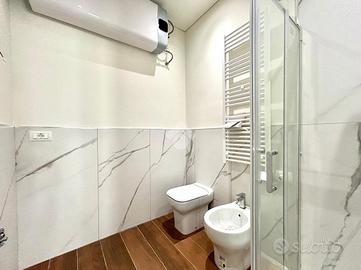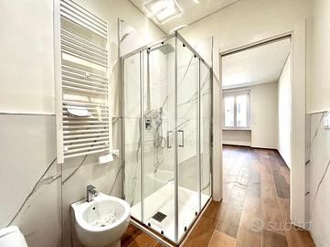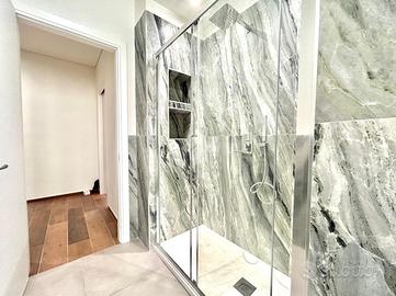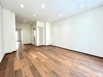 La recente e totale ristrutturazione dell'immobile, che ha incluso impianti, bagni, pavimentazione, serramenti e distribuzione degli spazi, permette di trovare un'ambiente curato, gradevole e di impronta moderna. L'ingresso avviene su un disimpegno che da accesso all'ampia zona living con cucina a vista, tavolo e zona relax con divano. L'ambiente risulta molto luminoso grazie all'ampia porta finestra che conduce al primo dei tre balconi dell'appartamento. Le camere da letto sono tre, tutte di metratura matrimoniale, di cui due con sfogo su balcone ed una finestrata. Quest'ultima arricchita dal bagno 'en suite' completo di doccia. Ultima l'appartamento un secondo bagno finestrato e con un'ampia doccia walk-in.