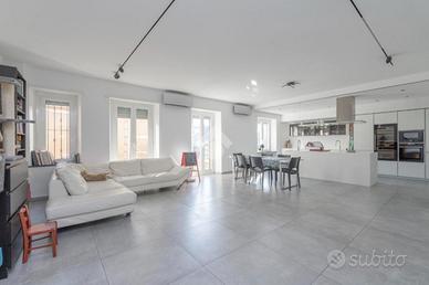 L'appartamento è dotato di un avanzato impianto di riscaldamento autonomo a pavimento bizona, recentemente aggiornato con una nuova caldaia a condensazione, e di un impianto di climatizzazione con due dual split Daikin, presenti in tutti gli ambienti della casa, ad eccezione dei bagni. L'impianto elettrico, presente in ogni stanza, è stato predisposto con prese LAN e una predisposizione per la domotica, permettendo una gestione intelligente degli spazi. È presente inoltre un impianto di addolcimento dell'acqua e un sistema di acqua calda e fredda collegata con il terrazzo.