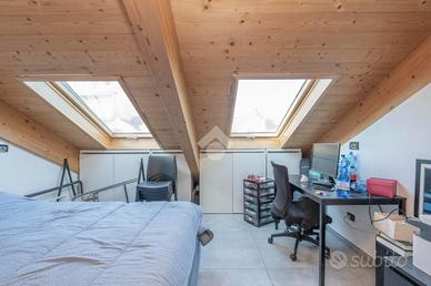 Le tapparelle sono completamente elettrificate, mentre i velux, sono alimentati da pannelli solari e dotati di telecomando per una gestione facile e immediata. La completa rotazione dei velux presenti nella zona notte consente una perfetta aerazione degli ambienti interni. Le porte interne sono tutte a scomparsa, modello filo m