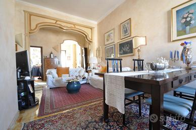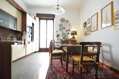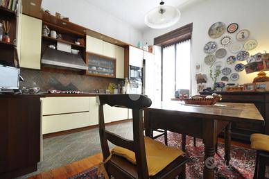 VIA NIZZA, pressi Metropolitana, affascinante alloggio in stabile d'epoca in stile Liberty. Situato in un edificio del 1900, l'immobile offre una superficie di 115 mq, perfettamente distribuita in quattro locali. L'appartamento comprende un ingresso, un ampio salone, dove è stata ricavata una camera da letto matrimoniale con bow window, un bagno ben rifinito , una lavanderia, una zona armadi per il cambio stagione che garantisce comfort e praticità e una cantina. Il balcone interno cortile è collegato ad un terrazzino coperto privato, perfetto per momenti di relax. L'edificio è dotato di ascensore, facilitando l'accesso all'appartamento. Questa proprietà rappresenta un'opportunità unica per chi desidera vivere in un contesto storico, senza rinunciare alle comodità moderne.