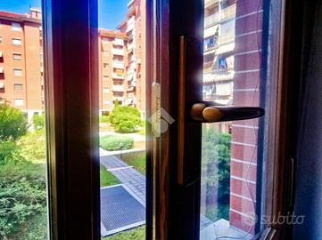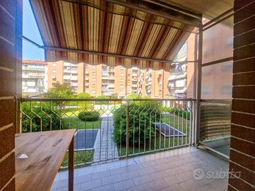 In Via Verolengo, all'interno di un moderno complesso residenziale edificato nel 2001, si trova questo appartamento dal taglio funzionale e dagli ambienti accoglienti. Il contesto è tranquillo e ben curato, arricchito da un giardino condominiale e dotato di tutti i comfort tipici delle costruzioni recenti: videocitofono, ascensore ampio e accessibilità completa a tutti i livelli, senza barriere architettoniche. L'ingresso, protetto da una porta blindata, si apre su un disimpegno che conduce alla sala, uno spazio ampio e luminoso, ideale per il relax quotidiano e la vita in famiglia. La cucina è separata e abitabile, e dispone di un balcone comodo e funzionale. Un secondo balcone è accessibile da una delle camere, e la doppia esposizione garantisce ambienti ben arieggiati e naturalmente illuminati. La zona notte ospita due camere da letto rifinite in parquet, accoglienti e confortevoli. Il bagno principale è finestrato, moderno e ben rifinito, con un ampio box doccia walk-in in vetro satinato. È inoltre presente un locale attualmente utilizzato come studio, già predisposto per essere trasformato in un secondo bagno, con attacchi e rivestimenti già presenti. L'appartamento è stato ristrutturato con gusto e si presenta in condizioni perfette, pronto per essere abitato. Il riscaldamento è autonomo e nella sala è già installata l'aria condizionata. Le finiture, dai pavimenti chiari alle porte in legno con inserti in vetro, contribuiscono a creare un ambiente armonioso e piacevolmente luminoso. Completano la proprietà una comoda cantina al piano interrato e la possibilità di acquistare, separatamente, un box auto singolo nello stesso stabile, accessibile tramite cancello automatico e basculante manuale. La zona è ricca di servizi, negozi e collegamenti, e gode della vicinanza al Parco Dora, grande area verde cittadina ideale per il tempo libero, le passeggiate e le attività all'aperto.