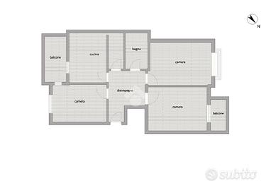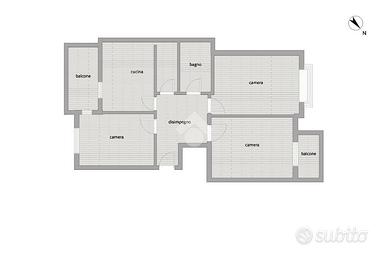 L'ingresso su disimpegno che collega gli ambienti, tre spaziose camere di taglio matrimoniale, cucina abitabile, servizio finestrato assicurando luminosità e aerazione naturale, ed infine il ripostiglio.