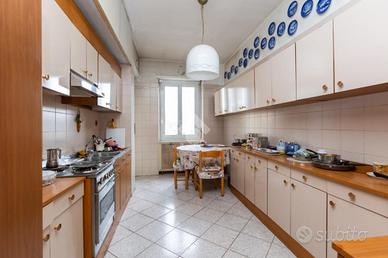 Lo stabile degli anni '60 si presenta in ottime condizioni, provvisto di ascensore accoglie l'abitazione al quinto piano di sette.