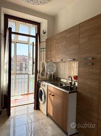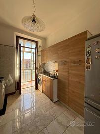 Via Michele Lessona - In stabile signorile e ben curato, proponiamo al quinto piano con ascensore l'appartamento in vendita. L'immobile è dotato di infissi in legno con doppi vetri, che garantiscono un ottimo isolamento termico e acustico, e di portoncino blindato per una maggiore sicurezza. Gli ambienti sono ampi e molto luminosi, grazie alla buona esposizione est/ovest ed alle ampie finestre che donano luce naturale per gran parte della giornata. Il soggiorno è collegato alla cucina abitabile mantenendo una distinzione chiara degli spazi. Le due camere sono entrambe spaziose e con balconi. Il bagno è completo di vasca. Il ripostiglio e la cantina al piano seminterrato completano la proprietà. Il sistema di teleriscaldamento contribuisce a mantenere una temperatura piacevole durante tutto l'anno, con costi gestibili e una maggiore efficienza energetica, mentre il boiler a gas assicura acqua calda costante e immediata. Possibilità di box auto pertinenziale a parte.