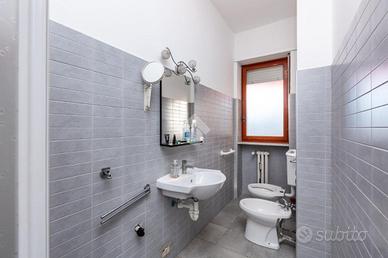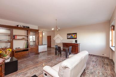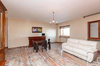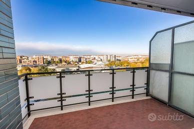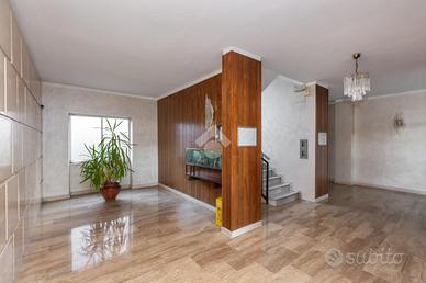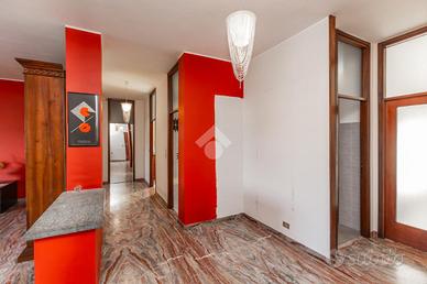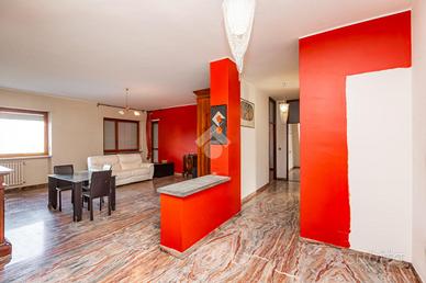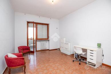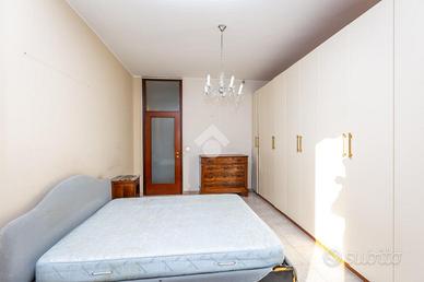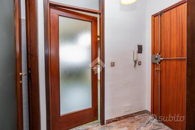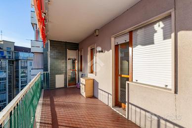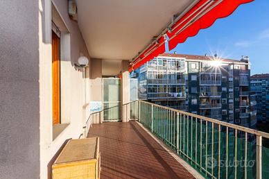L'appartamento è all'ottavo piano di un complesso, composto da tre scale, signorile degli anni '70 dotato di doppio ascensore e del servizio di portineria. Il piano alto è la doppia esposizione garantiscono una vista panoramica e luminosità. Come da costruzione troviamo ancora ad oggi il doppio ingresso, quello di servizio per la cucina ed un bagno e quello principale direttamente sulla sala. La cucina è abitabile è affaccia sull'interno cortile grazie alla finestra e all'accesso ad un ampio terrazzo dotato di tende estive. Il bagno di servizio è comunque completo di sanitari, box doccia, lavandino e carico/scarico per la lavatrice. La sala, di circa 35 mq, è sicuramente l'ambiente dove poter passare momenti di relax in tutta comodità. E' dotata di doppia finestra e dell'accesso al balcone che dà sulla via principale. Data la sua ampia metratura potrebbe anche essere divisa per ricavare una terza camera da letto. Le camere attualmente sono due entrambe con affaccio sul balcone/terrazzo, una lato cortile comunicante con la cucina ed una lato via comunicante con la sala. Il bagno principale è ampio e dotato di vasca. Tra la due camere è presente un ripostiglio. Completa la proprietà una cantina al primo piano interrato. Il sistema di riscaldamento è il teleriscaldamento a radiatori dotati di termovalvole. C'è la possibilità di acquistare un box auto singolo sito nello stesso complesso al prezzo di € 20.000,00. L'ascensore ci accompagna anche ai piani interrati.