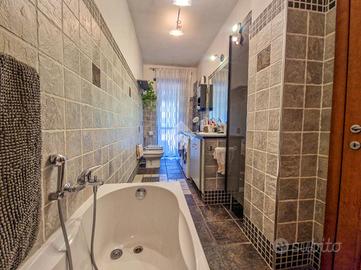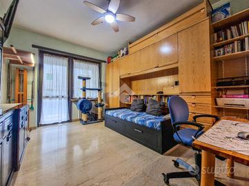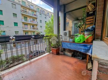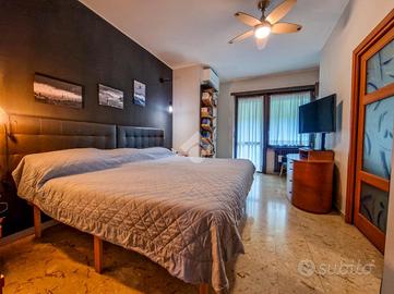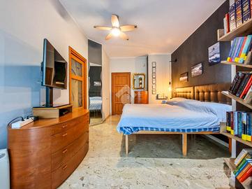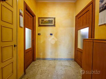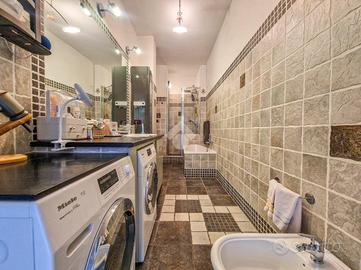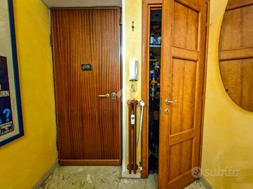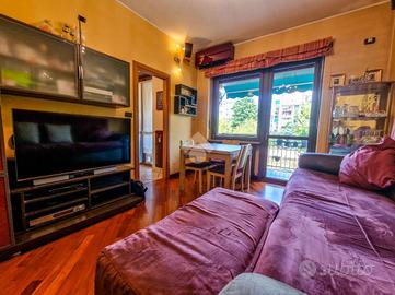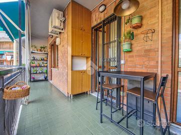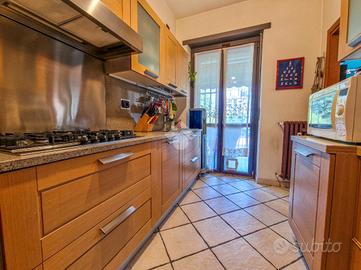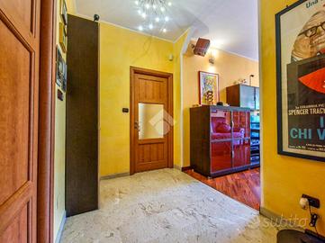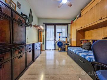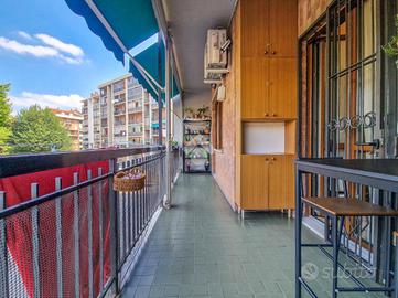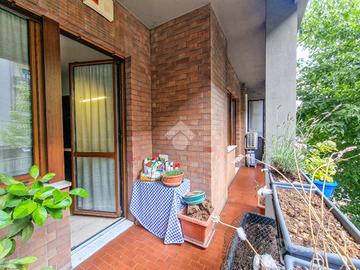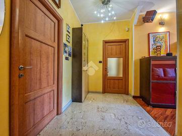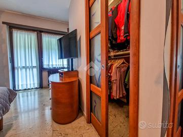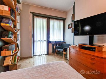 L'immobile è inserito in un contesto edificato nella metà degli anni Sessanta, mantenuto in ottimo stato nelle parti comuni. Lo stabile è dotato di ascensore con accesso diretto al piano dei box auto, mentre il riscaldamento è centralizzato e regolato da termovalvole, garanzia di comfort e gestione efficiente dei consumi. La facciata in paramano conferisce all'edificio un aspetto attuale e al tempo stesso pratico dal punto di vista manutentivo. L'androne d'ingresso, rivestito in marmo, accoglie con eleganza: curato nei dettagli, arricchito da piante ornamentali e dal caratteristico tappeto rosso che accompagna i primi gradini. Una seconda porta, in vetro e legno, separa l'androne dal vano scale, aggiungendo un ulteriore tocco di raffinatezza. L'abitazione gode di una doppia esposizione che assicura un'ottima luminosità durante tutto l'arco della giornata. I due balconi, ampi e vivibili, offrono la possibilità di posizionare un tavolino con sedie per piacevoli momenti all'aperto. La metratura interna è ben distribuita, garantendo una fruibilità ottimale degli spazi, oggetto di una ristrutturazione attenta e curata nei materiali e nei dettagli. Le tonalità calde dominano l'ambiente, con porte interne in legno impreziosite da inserti e una porta a scrigno che conduce alla cabina armadio della camera principale. Gli infissi, tutti con doppi vetri, assicurano un eccellente isolamento termico e acustico. La porta d'ingresso è blindata e l'impianto di climatizzazione, con split posizionati nel soggiorno e nella camera matrimoniale, garantiscono comfort in ogni stagione. L'ingresso disimpegna armoniosamente gli ambienti e introduce nel soggiorno, reso accogliente dalla pavimentazione in parquet. La cucina, separata e funzionale, permette di sfruttare tre pareti per l'allestimento di una completa zona cottura. La zona notte comprende due camere da letto, di cui una particolarmente ampia con cabina armadio dedicata. Il bagno, dispone della porta finestra ed è di generose d...
