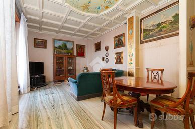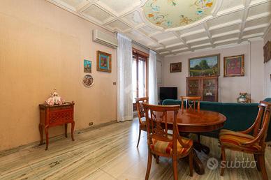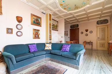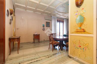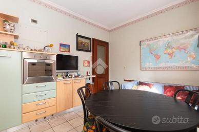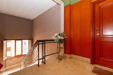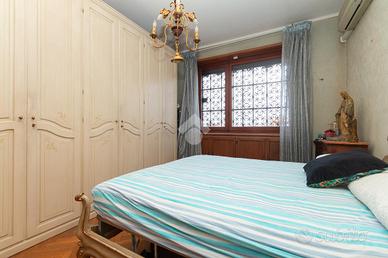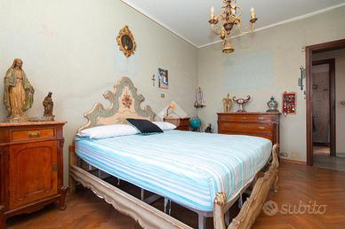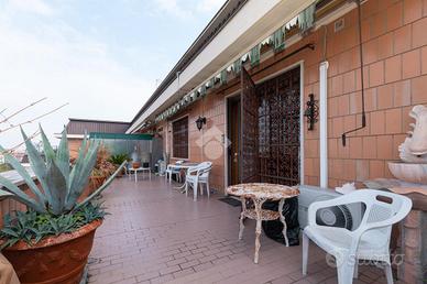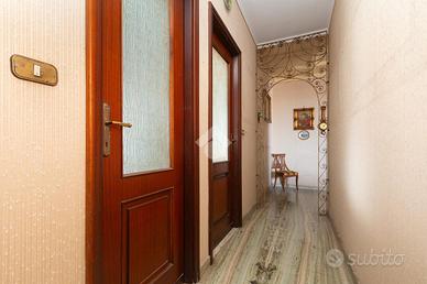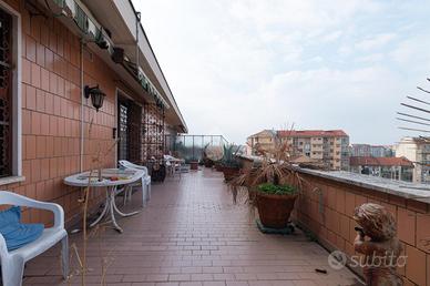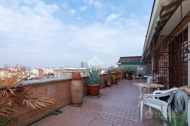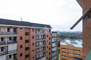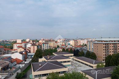 Via Tolmino 43. L'appartamento è sito in uno stabile signorile edificato negli anni '70 dotato di servizio di portineria. Le sue parti comuni sono in ottimo stato e non necessitano di interventi di manutenzione straordinaria. Il quartiere San Paolo ha a disposizione numerosi servizi quali scuole nelle immediate vicinanze, attività commerciali e trasporto pubblico che garantisce spostamenti in qualsiasi luogo della città. L'attico si trova al nono ed ultimo piano e gode della miglior esposizione ovvero est-ovest. L'ingresso è sull'ampia zona giorno che ha la pavimentazione in marmo e ospita il ripostiglio. Un'ampia porta-finestra dà l'accesso al meraviglioso terrazzo di 44mq che affaccia sull'arco Alpino. Il disimpegno, anch'esso con la pavimentazione in marmo, conduce alla cucina abitabile con angolo cottura con balcone che affaccia sul giardino condominiale. Al fondo del disimpegno troviamo la zona notte con due comode camere matrimoniali entrambe con parquèt e due bagni entrambi finestrati. Sono presenti due climatizzatori, uno in salone e l'altro in una delle due camere. La porta d'ingresso è blindata. Il riscaldamento è centralizzato a pavimento e gli infissi sono in legno. Conclude la soluzione la cantina al piano interrato.