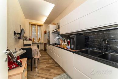 Completamente ristrutturato nel 2019, con pavimentazione uniforme per tutte le camere e infissi in legno doppio vetro. l'immobile è valorizzato dalla doppia esposizione est/ovest che garantisce luce naturale durante l'arco della giornata. L'ingresso è living sulla zona giorno, un ambiente accogliente dotato di climatizzatore caldo/freddo e collegato a un ampio balcone con affaccio sul cortile interno. La cucina, abitabile, è impreziosita da un controsoffitto con strisce LED e da una finestra. Una porta scorrevole separa la zona giorno dalla zona notte. La prima camera da letto dispone di balcone e cabina armadio, mentre la seconda è dotata di finestra.