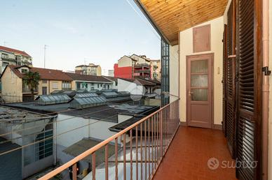 QUADRILOCALE IN VILLA SEMI INDIPENDENTE, POSSIBILITA' FUTURA DI ACQUISTARE APPARTAMENTO SOTTOSTANTE. Via Morozzo 11. La villa semi indipendente è situata in una via tranquilla e riservata ma allo stesso tempo in una posizione strategica, vicino a vari servizi come il parco Ruffini, palestra, supermercati e mezzi pubblici. Nel corso del tempo l'edificio è stato oggetto di manutenzione straordinaria. L'appartamento si trova al primo piano e gode della doppia esposizione. L'ingresso si apre sul disimpegno che divide tutti gli ambienti. La cucina è molto ampia, grazie all'abbattimento della parete centrale e dispone di un ampio balcone vivibile che affaccia sul cortile interno. Le tre camere sono matrimoniali, adatte a qualsiasi utilizzo, di cui due con balcone su strada. Il bagno è di forma quadrata ed ha l'areazione forzata. Gli infissi sono in alluminio con doppio vetro, la porta d'ingresso è blindata ed il riscaldamento è autonomo. Sono presenti infine una cantina e una soffitta.