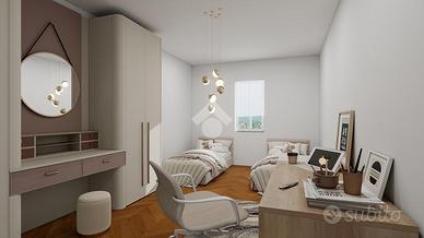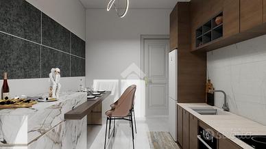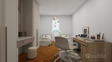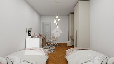 in Corso G. Ferraris, situato al quinto piano di uno stabile ben curato, proponiamo ampio quadrilocale in fase di ristrutturazione completa, libera da subito, con eventuale consegna a Gennaio 2026. L'appartamento gode di una doppia esposizione che garantisce ottima luminosità durante tutto l'arco della giornata. La disposizione degli spazi è funzionale e moderna, con un ingresso che si apre su un disimpegno centrale che separa le diverse zone della casa. La cucina abitabile è dotata di balcone con affaccio sul tranquillo cortile interno, mentre il soggiorno, ampio e accogliente, è reso ancora più luminoso dal balcone che lo collega direttamente alla cucina, creando una piacevole continuità tra gli ambienti. Le due camere da letto, entrambe con pavimentazione in parquet, sono spaziose e ben distribuite. Una camera è dotata di finestra, mentre l'altra ha un balcone. La pavimentazione in gres porcellanato è presente nel disimpegno, nella zona giorno e nei bagni, garantendo praticità e un tocco di eleganza. L'immobile gode di doppi servizi, progettati con un design moderno ed elegante, caratterizzati da finiture di alta qualità che rendono ogni ambiente raffinato e funzionale. Completano la proprietà un comodo ripostiglio ed una cantina di pertinenza.