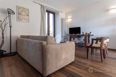 In via Breglio, uno degli snodi principali e più serviti del quartiere, sorge un elegante complesso residenziale di soli due piani, inserito in un contesto riservato e tranquillo. La posizione è ideale per le famiglie che desiderano coniugare quiete e comodità: nelle immediate vicinanze si trovano attività commerciali, piccoli supermercati, ristoranti e caffetterie, mentre i mezzi pubblici garantiscono collegamenti rapidi e agevoli con il centro città. L'edificio si presenta in ottimo stato manutentivo; negli ultimi anni la facciata è stata completamente rivista e oggi si distingue per la sua luminosa tonalità giallo chiaro. Le spese di gestione sono contenute e il riscaldamento è autonomo, elementi che rendono la soluzione particolarmente funzionale e conveniente. L'abitazione è stata internamente ristrutturata con materiali moderni e finiture curate. L'ingresso, protetto da porta blindata, si apre sulla zona giorno, vero cuore della casa, pensata per accogliere e condividere momenti conviviali con tutta la famiglia. Soggiorno e cucina si sviluppano in un unico ambiente armonioso, dove la pavimentazione dai toni caldi del marrone dona accoglienza, mentre le pareti bianche amplificano luce e profondità. Elemento distintivo dell'immobile sono i suggestivi soffitti a volta; lungo il disimpegno, i mattoni a vista aggiungono carattere e un piacevole richiamo allo stile contemporaneo con accenti autentici. La zona notte è composta da due camere da letto, entrambe di taglio regolare e facilmente arredabili. I doppi servizi, entrambi completi di sanitari e box doccia, servono comodamente l'abitazione; nell'antibagno è stato inoltre ricavato un pratico e funzionale spazio lavanderia. Tutti gli infissi sono dotati di doppi vetri, garantendo un ottimo isolamento acustico ed energetico. Una soluzione ideale per chi cerca una casa pronta da vivere, in un contesto curato, silenzioso e ben collegato.