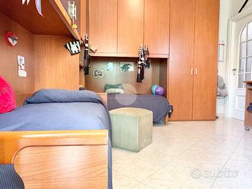 Ampio quadrilocale in vendita - 90 mq con tripla esposizione Hai sempre sognato un appartamento spazioso, luminoso e ben distribuito? Questa è l'occasione che stavi cercando! Ti proponiamo in vendita un quadrilocale di 90 mq situato al secondo piano di un condominio di soli quattro piani, senza ascensore, in un edificio degli anni '50. L'immobile, frutto dell'unione di due bilocali, gode di una tripla esposizione che garantisce un'eccezionale luminosità in tutti gli ambienti. L'ampia zona giorno di 40 mq circa è ideale per vivere momenti di relax o per intrattenere amici e familiari. La parete cottura permette di avere tutto il necessario a portata di mano, mantenendo l'ambiente pratico e funzionale. L'appartamento offre anche due comode camere da letto, e due bagni: uno ristrutturato di recente con moderno box doccia e l'altro con vasca, perfetto per momenti di relax. A completare la proprietà ci sono tre balconi, che offrono spazi all'aperto per godersi la vista e l'aria fresca, e due cantine, utili per riporre oggetti e sfruttare al meglio lo spazio disponibile. L'immobile è dotato di porta blindata, infissi in alluminio doppio vetro per un'ottima insonorizzazione e isolamento termico, serrande elettriche e riscaldamento centralizzato, per il massimo comfort durante tutto l'anno. La zona è tranquilla e ben servita, con tutti i principali servizi a portata di mano, come negozi, scuole e mezzi pubblici, mentre la posizione al secondo piano garantisce una vista aperta e un'ottima privacy. Per maggiori informazioni o per prenotare una visita, non esitare a contattarci!