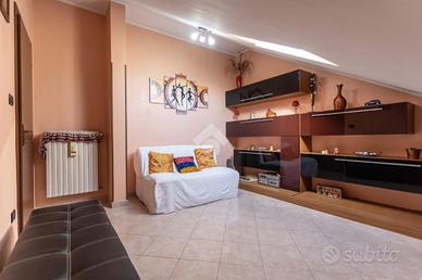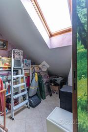 L'edificio, di recente costruzione risale al 2005, è stato realizzato nel pieno rispetto di tutte le normative vigenti, con particolare attenzione all'abbattimento delle barriere architettoniche. L'accesso all'ascensore è agevole e privo di ostacoli; quest'ultimo, dotato di porte scorrevoli, collega comodamente tutti i piani dello stabile, inclusi il piano cantine e l'area box. La facciata si presenta elegante e curata, rivestita in paramano, mentre il contesto condominiale è impreziosito da un gradevole giardino comune. A completare le dotazioni moderne dello stabile vi è il videocitofono. L'abitazione, posta all'ultimo piano, gode di una posizione privilegiata e si distingue per la presenza di due terrazzini vivibili e ben sfruttabili. Il primo, accessibile direttamente dalla zona giorno, offre uno spazio ideale per momenti di relax all'aperto: può essere arredato con tavolo e sedie da esterno e dispone di metratura sufficiente anche per l'inserimento di un dondolo. Il secondo terrazzino, con accesso dalla porta finestra del bagno, è attrezzato con lavabo ed è stato organizzato come comoda e funzionale zona lavanderia. L'ingresso si apre su una luminosa zona giorno in stile living, con cucina a vista, ambiente accogliente e ben distribuito, valorizzato dalla presenza di una stufa a pellet, che contribuisce a garantire comfort abitativo ed efficienza energetica. La zona notte è composta da due camere, entrambe illuminate dalla luce naturale che filtra dai velux, creando un'atmosfera calda e rilassante. La camera matrimoniale è arricchita da una pratica cabina armadio, ideale per ottimizzare gli spazi. Il bagno, ampio e ben squadrato, è completo di tutti i sanitari e dotato di box doccia multifunzione, pensato per offrire comfort e praticità. Internamente l'immobile si presenta ristrutturato e in ottime condizioni: tutti gli infissi sono dotati di doppi vetri, la porta è blindata e l'abitazione è servita da impianto di aria condizionata con due split nella zona g...