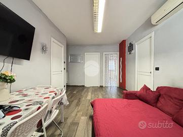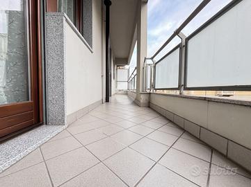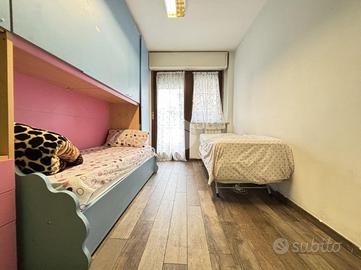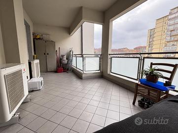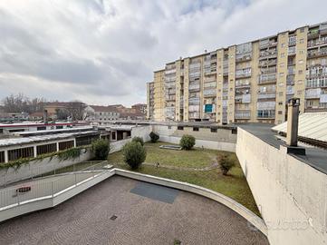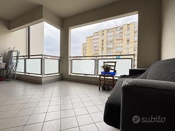 Nel cuore di Borgo Vittoria a Torino, in Via Saorgio, proponiamo un elegante quadrilocale situato al piano basso di un edificio di recente costruzione. Stabile privo di barriere architettoniche, dotato di ascensore che conduce fino al piano cantine, videocitofono e giardino condominiale. Il riscaldamento è autonomo, per una gestione ottimale dei consumi. Gli infissi esterni in legno con doppi vetri garantiscono un ottimo isolamento termico e acustico, mentre il condizionatore presente in tutte le stanze assicura comfort in ogni stagione. Un ulteriore vantaggio è la possibilità di acquistare un box auto doppio al piano terra, situato all'interno del cortile e dotato di luce interna, ideale per chi cerca comodità e sicurezza per i propri veicoli; il cancello su strada è elettrico. L'immobile si estende su una superficie di 91 mq e offre spazi ben distribuiti. La porta blindata si apre sull'ingresso che ci conduce nell'ampia zona giorno composta dalla sala e dalla cucina abitabile, entrambe hanno l'affaccio sul terrazzo con vista sull'interno cortile, perfetto per momenti di relax all'aperto. Le due camere da letto invece si affacciano sul balcone dal lato strada. Il bagno finestrato è completo di tutti i sanitari ed è dotato sia della vasca sia della doccia. Un disimpegno, con attacchi per la lavatrice, può essere utilizzato come pratico vano lavanderia. La cantina completa la proprietà. Situato in una zona ben servita da negozi e ben collegata grazie ai mezzi pubblici, questo quadrilocale risulta essere ideale per chi desidera iniziare una nuova esperienza abitativa. La vicinanza a servizi di vario genere e la facilità di accesso al trasporto pubblico sottolineano la comodità della posizione, consentendo un facile collegamento con il centro città e la periferia. Nelle vicinanze oltre a trovare l'imbocco per il raccordo autostradale (RA10) che permette di collegare la città di Torino col suo aeroporto internazionale sito a Caselle Torinese, troviamo anche l