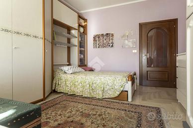 In una delle posizioni più ricercate del quartiere, con affaccio diretto su Piazza Bonghi, sorge un elegante complesso residenziale degli anni '70, caratterizzato da un'impronta signorile ancora oggi evidente. Il palazzo, alto nove piani, si presenta con una facciata in paramano, soluzione estetica e al tempo stesso pratica, pensata per garantire ordine e facile manutenzione nel tempo. Un vialetto immerso nel verde del giardino condominiale accompagna al portone in vetro e metallo. L'androne, curato e accogliente, è rifinito prevalentemente in marmo e impreziosito da un elegante tappeto rosso sui primi gradini. Una seconda porta in vetro satinato separa l'ingresso dal vano scale, dove l'ascensore conduce comodamente al piano. L'appartamento, situato a un piano alto, regala una splendida vista panoramica: da un lato le montagne, dall'altro la suggestiva Basilica di Superga. La doppia esposizione assicura luce naturale per tutta la giornata, valorizzando ogni ambiente. Varcata la porta blindata, l'ingresso disimpegna in modo ordinato tutti i locali. Gli infissi con doppi vetri garantiscono comfort termico e acustico. La cucina è abitabile e dotata di un comodo locale dispensa. La sala, ampia e luminosa, offre spazio e libertà di arredo, diventando il cuore conviviale della casa. La zona notte comprende due camere da letto ben squadrate. I doppi servizi rappresentano un importante valore aggiunto: il bagno principale è finestrato e completo di box doccia, il secondo dispone di vasca e wc. Ripostiglio e cantina completano la funzionalità degli spazi. Due i balconi: quello interno cortile è attrezzato come zona lavanderia con lavabo e attacco per la lavatrice. A completare la proprietà, un box auto doppio in larghezza al primo piano interrato, con accesso automatizzato e luce interna, proposto a euro 35.000, soluzione che consente di parcheggiare due auto affiancate con estrema comodità. Il contesto è apprezzato per la presenza di aree verdi, scuole e mezzi pubblici n...