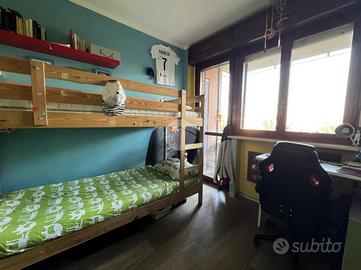 In zona Bertolla, più precisamente in Via Andezeno, proponiamo in vendita quadrilocale situato al terzo piano con ascensore di una palazzina in paramano degli anni '90. La soluzione si sviluppa con ingresso su disimpegno tramite porta blindata con cilindro antibulgaro europeo. Il soggiorno doppio con angolo cottura risulta luminoso grazie alla porta finestra con primo accesso al terrazzino. La soluzione dispone di due bagni, uno con accesso al balcone e il secondo cieco con ventilazione forzata. Le due camere da letto sono quadrate, di cui una con accesso al terrazzino. Completa la soluzione una comoda cantina. Gli infissi sono in doppio vetro legno, il riscaldamento è autonomo a metano e nel soggiorno è presente un condizionatore con pompa di calore inverter. Possibilità di acquistare un box auto singolo a € 16.000.