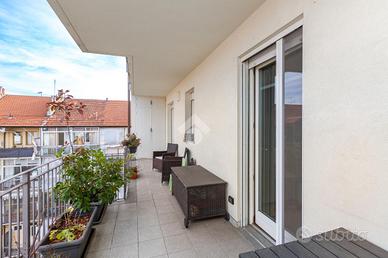 VIA TICINETO 6 : In un'arteria principale del quartiere Santa Rita, strada che collega i principali punti della Città di Torino e i Comuni di prima cintura, proponiamo in vendita ampio e nuovo quadrilocale con possibilità di BOX AUTO DOPPIO. La zona circostante si contraddistingue per la signorilità e il decoro dei fabbricati edificati, per la presenza dei negozi e attività commerciali ubicati nelle immediate vicinanze e per le fermate di trasporto pubblico. L'elegante stabile di recente costruzione, curato nelle parti comuni, garantisce comodità, modernità e sicurezza. Situato al 5° piano di 6, l'appartamento gode di due balconi e un AMPIO TERRAZZO, dal quale si apre una vista libera e luminosa, che conferisce all'abitazione un piacevole senso di ariosità e luminosità. Dall'ingresso si accede ad un accogliente openspace che ospita un confortevole soggiorno ed un ampia cucina, perfetti per chi cerca un ambiente che possa unire convivialità e relax. La zona notte è composta da due ampie camere da letto, opportunamente collegate da un comodo dispimpegno. I doppi servizi sono spaziosi e completi di ogni comfort, adatti a tutte le esigenze. Ogni locale è curato nei minimi dettagli, progettato minuziosamente per offrire il massimo benessere: riscaldamento a pavimento, infissi in legno e triplo vetro con eccellente isolamento termoacustico, impianto di climatizzazione presente in tutte le camere, impianto VMC e una distribuzione interna che unisce funzionalità e stile. La classe energetica è una A. Completa la soluzione la possibilità di un comodo box auto DOPPIO al piano sotterraneo e una pratica cantina. L'immobile rappresenta la soluzione ideale per chi desidera una casa elegante, e pronta da abitare, senza alcun intervento data la recente costruzione. Un'opportunità rara, da vivere e apprezzare dal vivo. Fissa un appuntamento e scoprirai se questa soluzione rispecchia le tue esigenze. Per ulteriori informazioni scrivici su