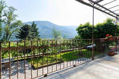 In una delle palazzine più antiche e caratteristiche del paese, composta da sole 5 unità immobiliari, situata sulla prima collina nel versante meglio esposto della valle e a soli 2 minuti d'auto dal centro, proponiamo un interessante appartamento trilocale posto al primo piano, secondo fuori terra. L'alloggio gode di un affaccio e accesso diretto allo splendido giardino privato, che si sviluppa su due lati del condominio. La parte più raccolta e riservata di questo è perfetta per pranzare all'aperto con amici o familiari, concedersi momenti di piacevole lettura o semplicemente rilassarsi con un riposino estivo su una chaise longue. La restante area verde, di circa 800 mq, è destinabile agli usi più svariati: dalla realizzazione di un orto alla coltivazione di frutteti, fino alla gestione di un piccolo spazio per animali da cortile, rappresentando una vera rarità per chi desidera vivere la casa in pieno contatto con la natura. Internamente l'abitazione è composta da cucina con caminetto, due camere da letto, bagno finestrato e da un gradevole terrazzino esposto a pieno sud, che garantisce luce naturale per gran parte della giornata. Al piano terra la proprietà si arricchisce di ulteriori spazi: un locale cantina di circa 30 mq, all'interno del quale è possibile, previa autorizzazione, ricavare un bagno, e un secondo locale adiacente di pari metratura, che potrebbe così essere trasformato in un ambiente indipendente da destinare a piccola dependance, studio professionale, sala hobby oppure spazio per feste e ritrovi, risultando completamente funzionale. Al piano superiore, con accesso dal vano scala condominiale, si trova il sottotetto, parte del quale è di pertinenza esclusiva dell'abitazione. A completare la proprietà, nel cortile comune sono presenti un locale rimessa privato e piacevoli spazi verdi condominiali, impreziositi da un suggestivo tavolo in pietra sotto un pergolato avvolto dal verde, ideale per momenti di relax e convivialità all'aperto. Il condo