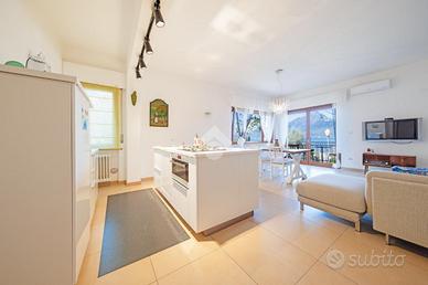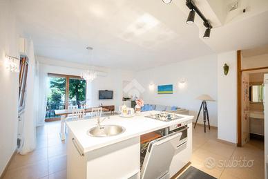 Attraverso l'ingresso indipendente si accede subito al cuore dell'abitazione composto dalla ampia zona giorno open-space in vista lago, dove troviamo la cucina ad isola e la zona living con affaccio sul terrazzo.