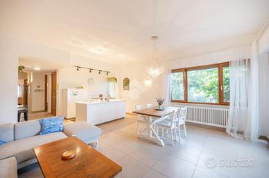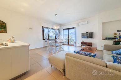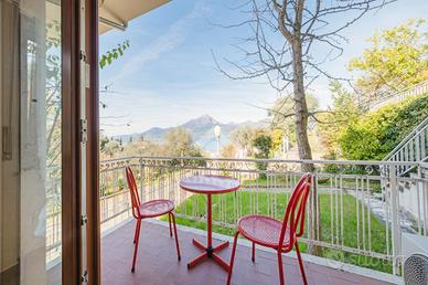 Porzione di villa bifamiliare recentemente ristrutturata con terrazzo e vista lago.