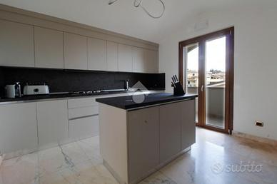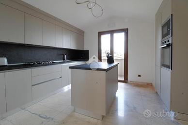 La zona notte offre tre spaziose camere matrimoniali, garantendo comfort e privacy per tutta la famiglia. Completano la soluzione tre bagni finestrati, curati nei minimi dettagli e rifiniti con marmi pregiati, che aggiungono un tocco di lusso e raffinatezza. Nella zona notte, invece, il parquet di alta qualità dona calore e eleganza.