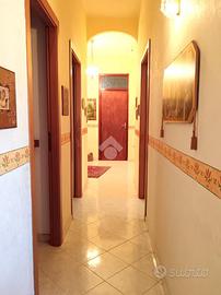 L'appartamento è luminoso ed arieggiato, grazie alla sua tripla esposizione ed ai balconi, di cui uno angolare, misura 109 mq circa, ed offre spazi ben distribuiti e disimpegnati. La zona giorno comprende una cucina abitabile, ideale per chi ama cucinare e trascorrere momenti conviviali. Completano la proprietà: un bagno con vasca, un accogliente soggiorno, due comode camere, una cameretta ed un riposto. La vicinanza al terrazzo condominiale soprastante, permette di poterlo sfruttare maggiormente rispetto agli altri condomini e quindi godere del clima mite della zona, facendo grigliate ed attività ricreative.