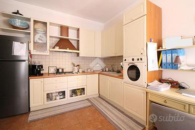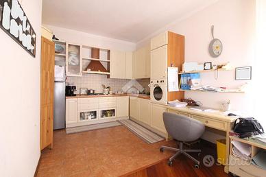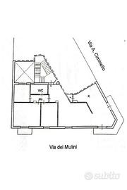 L'immobile si compone di ingresso, che conduce alla zona giorno che si sviluppa con un salotto ed una cucina abitabile. Quest'ultima zona risulta essere particolarmente luminosa grazie all'esposizione angolare, sia su Via A. Cipollina che su Via dei Mulini.