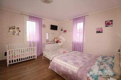 La zona notte è composta da tre camere doppie e due bagni luminosi, entrambi dotati da impianti doccia.