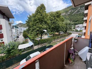 Tramite una porta blindata, si accede al comodo atrio d'ingresso che ci conduce alla zona giorno caratterizzata da un ampio soggiorno , con accessso diretto ad un balcone esposto a nord e cucinotto con un balcone esposto a Est.