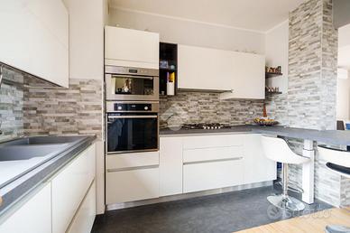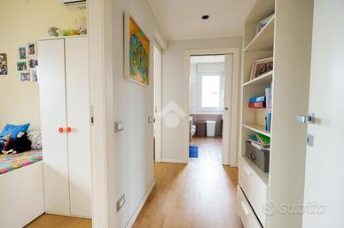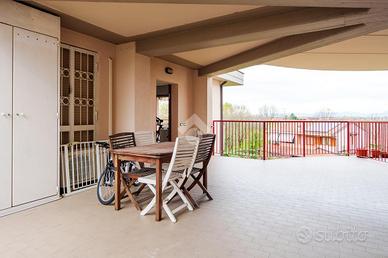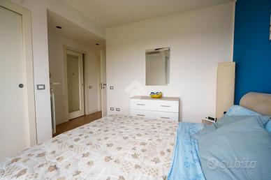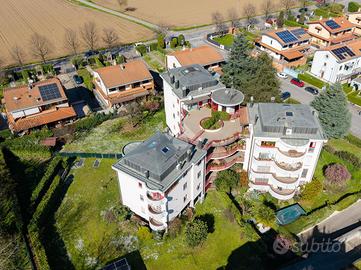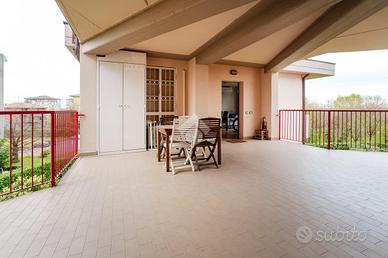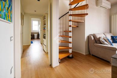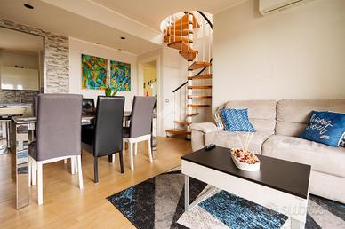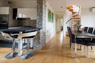 Nel comune di Treviglio proponiamo un attico di circa 174 mq situato al terzo e ultimo piano, disposto su due livelli e caratterizzato da ambienti moderni e ben distribuiti. L'appartamento, ristrutturato nel 2018, si apre su una luminosa zona giorno con soggiorno e cucina a vista, valorizzata dalla presenza di un comodo terrazzo con accesso diretto dall'entrata. Sullo stesso livello troviamo un disimpegno, una cameretta, un bagno e due camere matrimoniali, di cui una dotata di cabina armadio e bagno privato. Al piano superiore è presente una mansarda attualmente adibita a studio, ideale anche come locale hobby o zona relax. La soluzione è impreziosita da parquet, caldaia e split dell'aria condizionata recentemente sostituiti, porta blindata e impianto di allarme. Completano la proprietà due balconi, uno con accesso dal soggiorno e dal bagno e uno collegato alla camera da letto, oltre a un box doppio di 33 mq. Una soluzione ideale per chi cerca spazi generosi, comfort e finiture moderne in una zona comoda ai principali servizi.