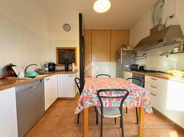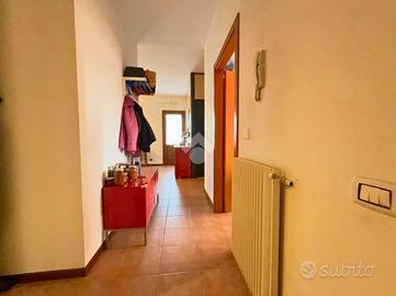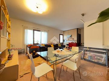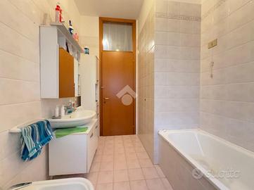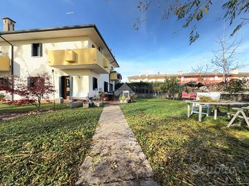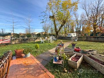 Treviso, zona Monigo. Proponiamo IN ESCLUSIVA appartamento al piano terra, costruito nel 1996, con giardino privato di 445 mq, ideale per chi cerca spazio esterno e tranquillità. L'abitazione offre una distribuzione funzionale degli ambienti: ingresso, luminoso soggiorno, cucina separata, camera matrimoniale, camera singola, studio versatile con possibilità di essere trasformato in ulteriore cameretta, oltre a due bagni finestrati, uno con doccia e l'altro con vasca, e un comodo ripostiglio. Al piano interrato è presente un garage di 81 mq, dove è presente anche il locale caldaia. L'immobile è dotato di riscaldamento autonomo. Gli infissi sono in vetrocamera con oscuri in legno. La proprietà è attualmente locata con contratto in essere fino a luglio 2026. La posizione è strategica, inserita in un contesto residenziale: a soli 300 metri dalla fermata dell'autobus, 500 metri dal parco pubblico e a 5 minuti in auto dal centro storico di Treviso.