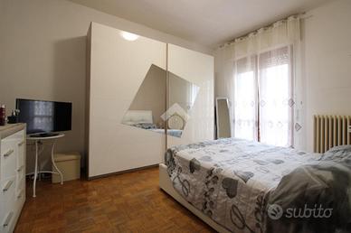 Il disimpegno conduce alla zona notte suddivisa in camera matrimoniale, con accesso ad un secondo balcone, bagno finestrato con doccia e terza camera singola.