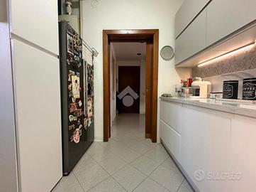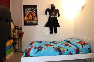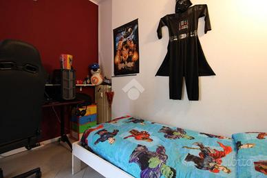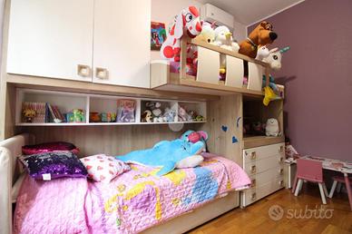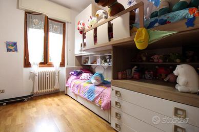 Si accede all'appartamento tramite ingresso che si apre nell'ampio soggiorno, con affaccio sul giardino dotato di secondo ingresso indipendente, e collegato alla cucina abitabile e ad una prima cameretta, servita da balcone.